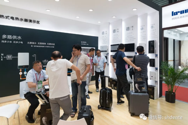 德恩特作為行業為數不多的品牌應邀參加了這次展會,以較大展示面積、上檔次展示形象和超大陣容,獨占鰲頭。德恩特展館以真人體驗沐浴生活、幸運玩轉大轉盤等現場活動以其難掩的光芒收獲了超高人氣,德恩特作為即熱式電熱水器行業標準起草單位和高端即熱式熱水器品牌,傳承了德系精工的工藝和嚴謹的風范,也以深厚的國際設計理念和實力吸引了來自行業和國外客商的廣泛關注,在展會期間,國內外意向合作客戶很多并已簽約合作客戶。